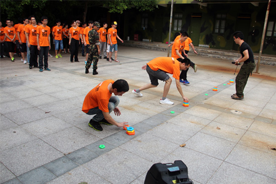 而“愚公移山”則是一個(gè)考驗(yàn)抓取核心問題,并分解安排個(gè)人定位的項(xiàng)目。項(xiàng)目規(guī)則看似簡(jiǎn)單,只要遵守規(guī)則,把五塊由小到大的道具從一個(gè)地方移到另一個(gè)地方。但在短時(shí)間內(nèi)分配到每個(gè)人并依照規(guī)則進(jìn)行轉(zhuǎn)移,卻難住了不少隊(duì)伍。遺憾的是,八個(gè)小隊(duì)最終只有三個(gè)小隊(duì)完成了項(xiàng)目。當(dāng)然,沒完成項(xiàng)目的隊(duì)伍,隊(duì)長(zhǎng)可就辛苦啦,做了好幾十個(gè)俯臥撐……