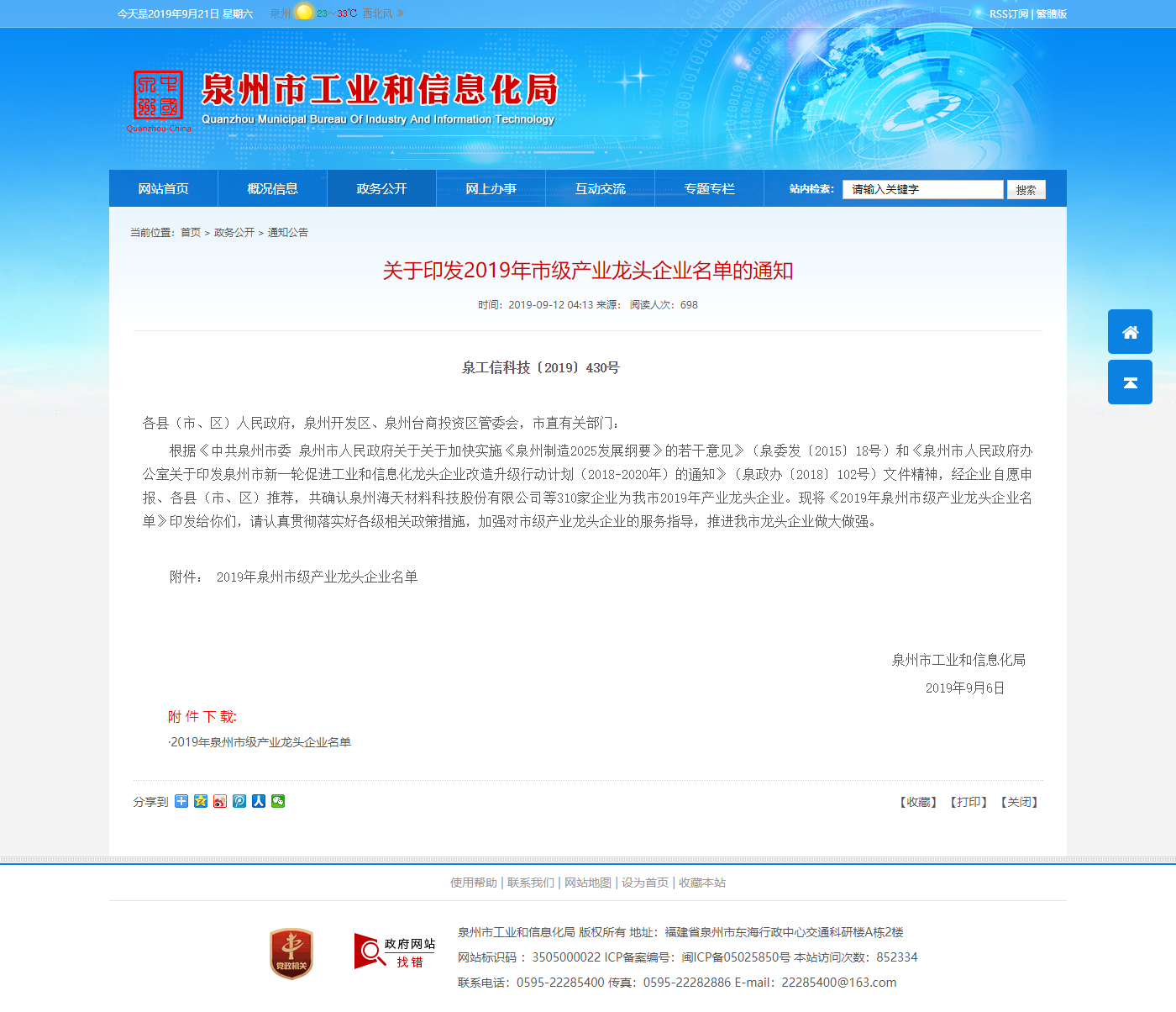 且:“能夠在相關行業(yè)領域充分發(fā)揮示范引領作用,帶動相關產(chǎn)業(yè)轉型升級、提質增效,具有較大規(guī)模、較強實力的重點骨干企業(yè)”(泉州市產(chǎn)業(yè)龍頭企業(yè)遴選意義)脫穎而出,這是多大的榮幸啊。