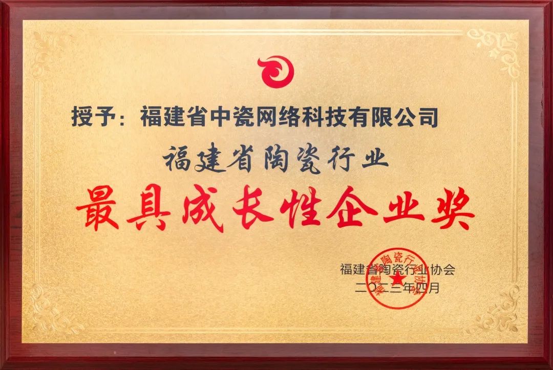 福建省陶瓷行業(yè)最具成長性企業(yè)獎,中瓷網(wǎng)絡(luò)再添新榮譽(yù)