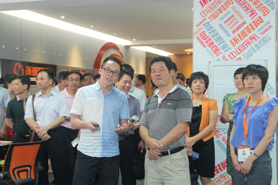 7月2日下午,福建省信息化局副局長邵玉龍等領導一行蒞臨訊網(wǎng)網(wǎng)絡視察。訊網(wǎng)網(wǎng)絡總經(jīng)理林文佳接待了考察團一行,并就企業(yè)的電子商務應用和運營情況進行了解說??疾靾F先后觀看了訊網(wǎng)網(wǎng)絡的企業(yè)文化墻和環(huán)球鞋網(wǎng)、淘鞋網(wǎng)宣傳視頻以及淘鞋網(wǎng)實時銷售展示系統(tǒng)。