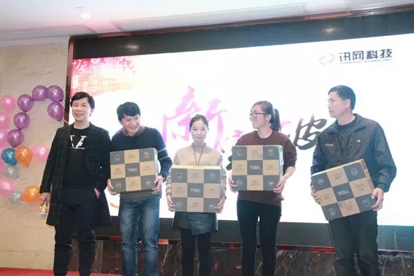 王董攜訊網(wǎng)全體股東上臺(tái)向全體員工敬酒。