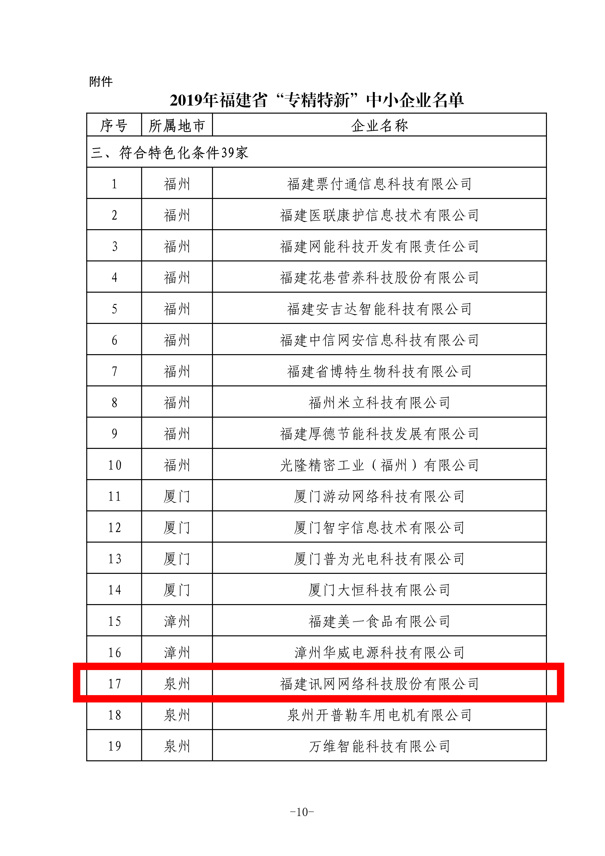 如此的戰(zhàn)略發(fā)展思維,與近年來新出臺的“專精特新”中小企業(yè)的遴選標準相吻合。由此,福建省工業(yè)和信息化廳近日公布了2019年福建省“專精特新”中小企業(yè)名單,共有185家優(yōu)秀企業(yè)入選,訊網(wǎng)網(wǎng)絡符合“特色化”條件入選。